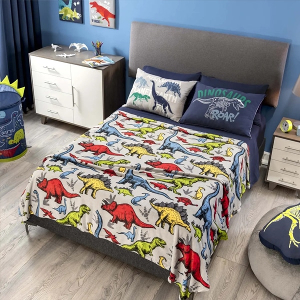 Comienza la aventura con el Cobertor Ligero Rex, con la combinación de sus colores brillantes y los dinosaurios llenarás de luz y energía la habitación, manteniendo su calidez. Renovar tu habitación es más fácil de lo que piensas.