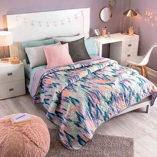 Edredón estampado con segunda vista lisa. Ultradelgado con capitonado especial. Muy ligero, fácil de guardar y lavar en casa. Al mejor precio.
